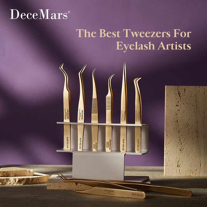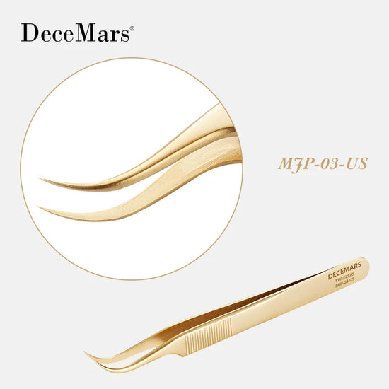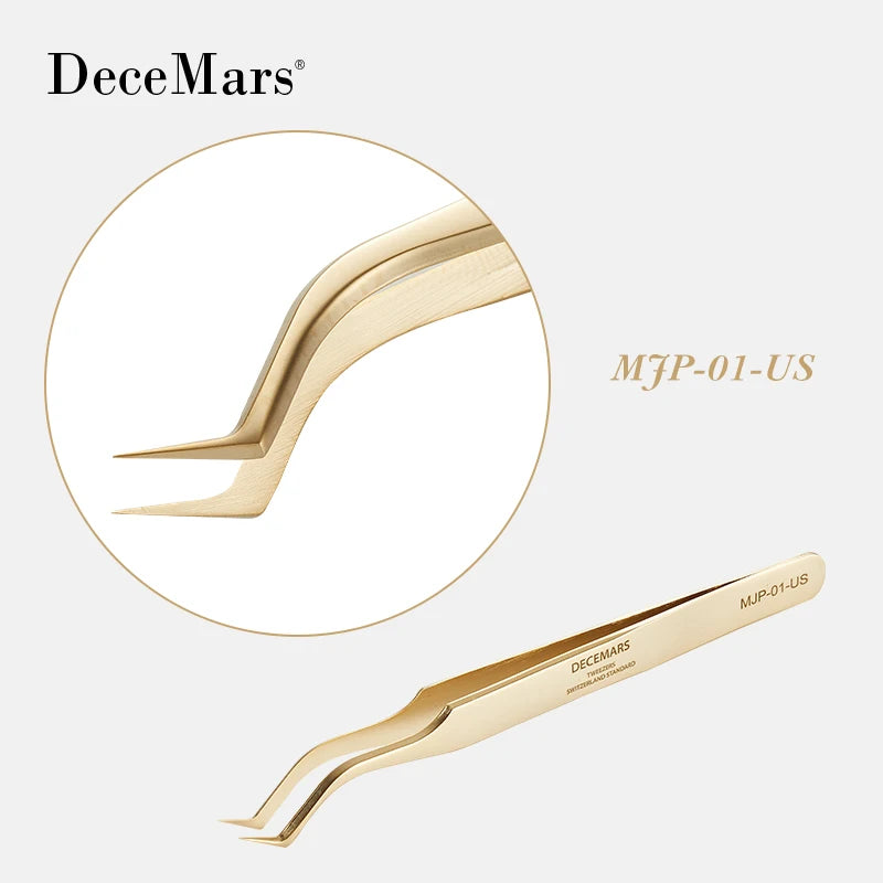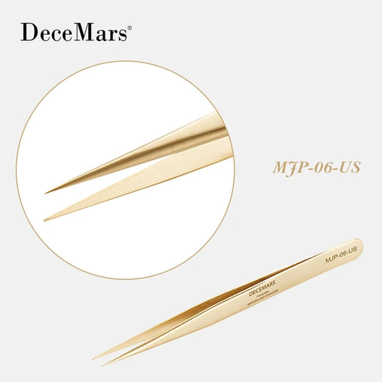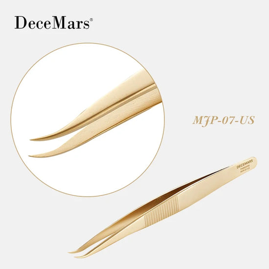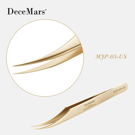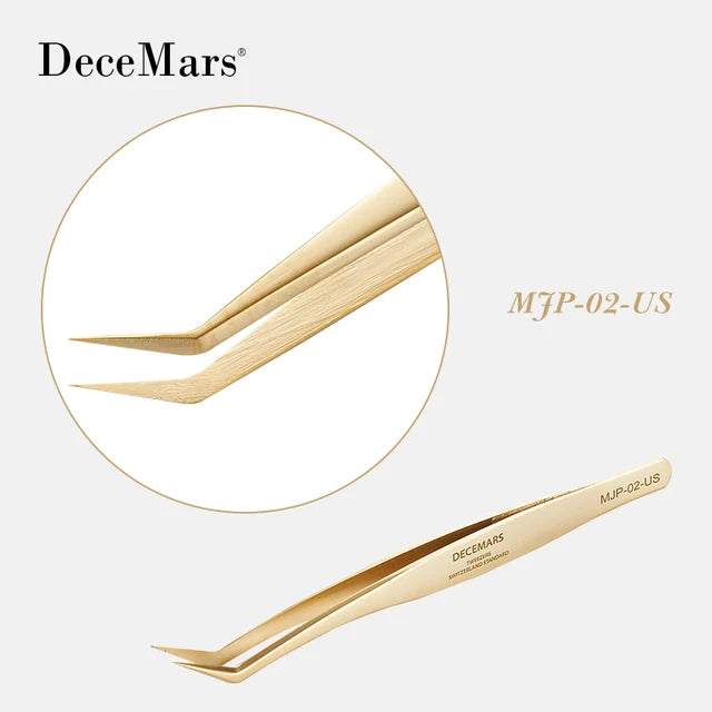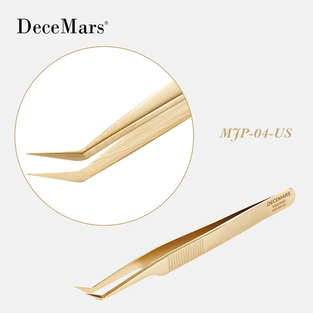 DeceMars Eyelash Extension Tweezers Gold Color