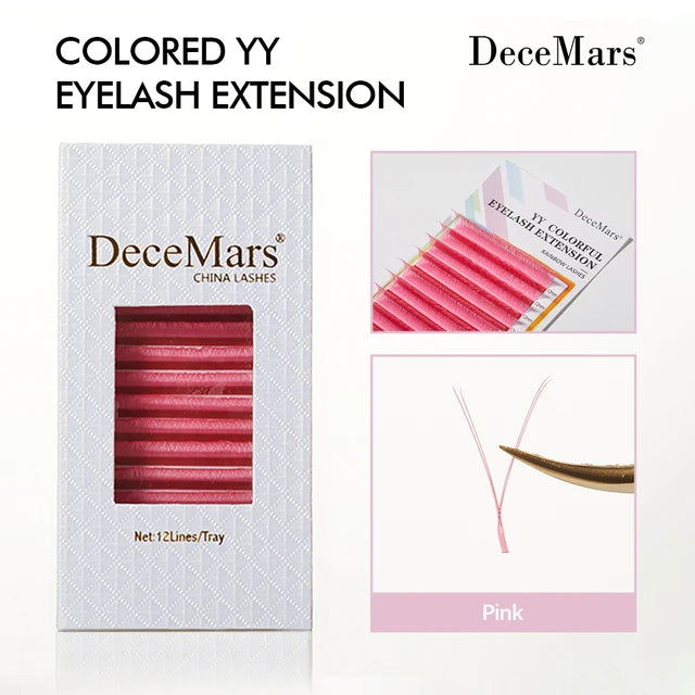 DeceMars Colored 0.07mm YY Eyelashes Extension 12 Lines-Pink