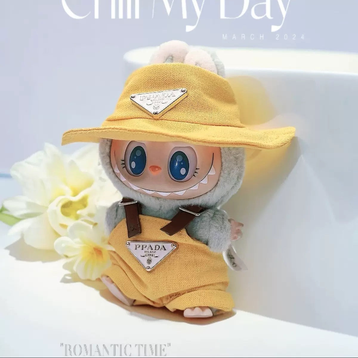 💖Prada Style Pink overalls + Pink hat Labubu Fashion Dress